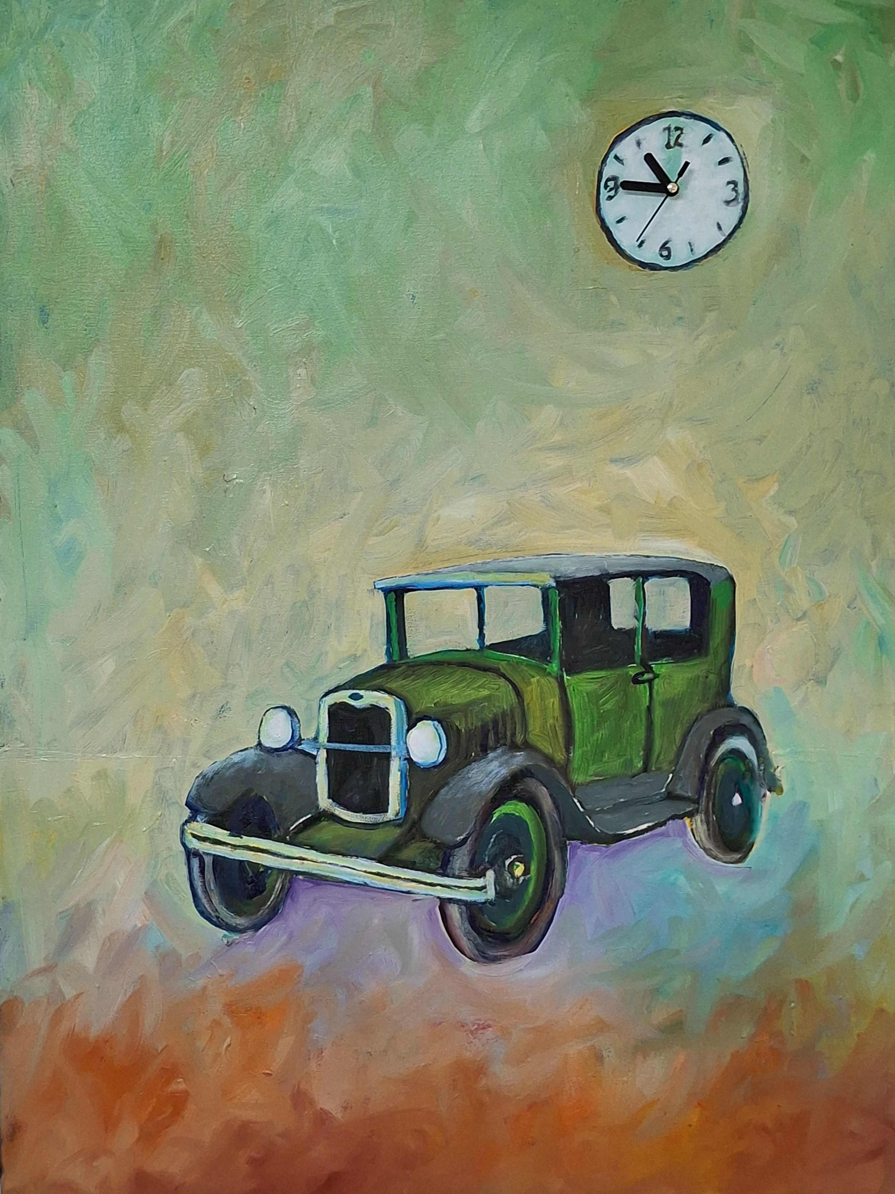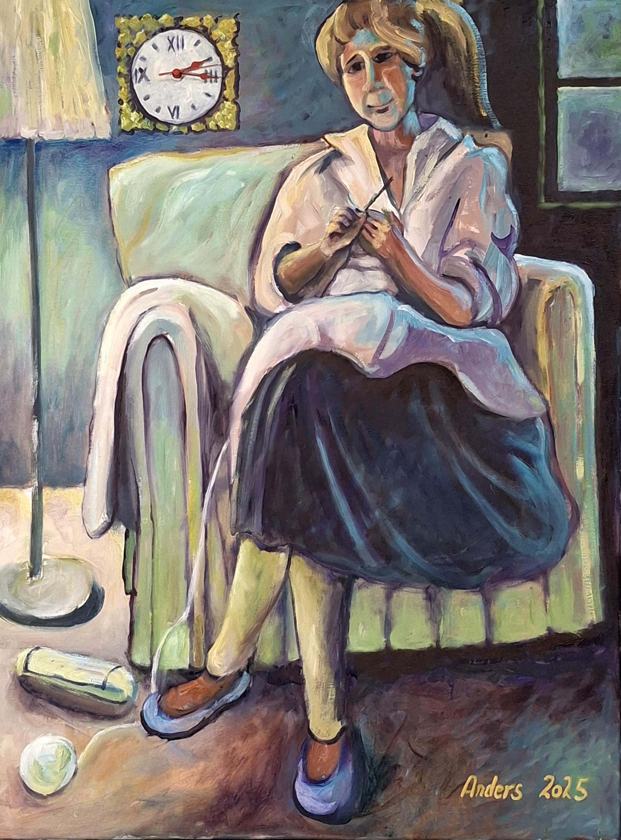 TIDEN GÅR. Det er et fænomen, jeg har lagt mærke til i lang, lang tid, ja siden jeg blev født. Jeg er stadig meget fascineret af at tiden går . Og det er baggrunden for, at jeg igennem årene ofte har bygget ure ind i mine malerier. Jeg udstillede i februar 2023 sammen med Isefjordskunstnerne i Østre Kapel i Holbæk. 17 af maleriene er med indbyggede ure. De kan, når de hænger på væggen i dagligstuen eller køkkenet, minde køberen om, at tiden ikke er gået i stå, og at man lever endnu: