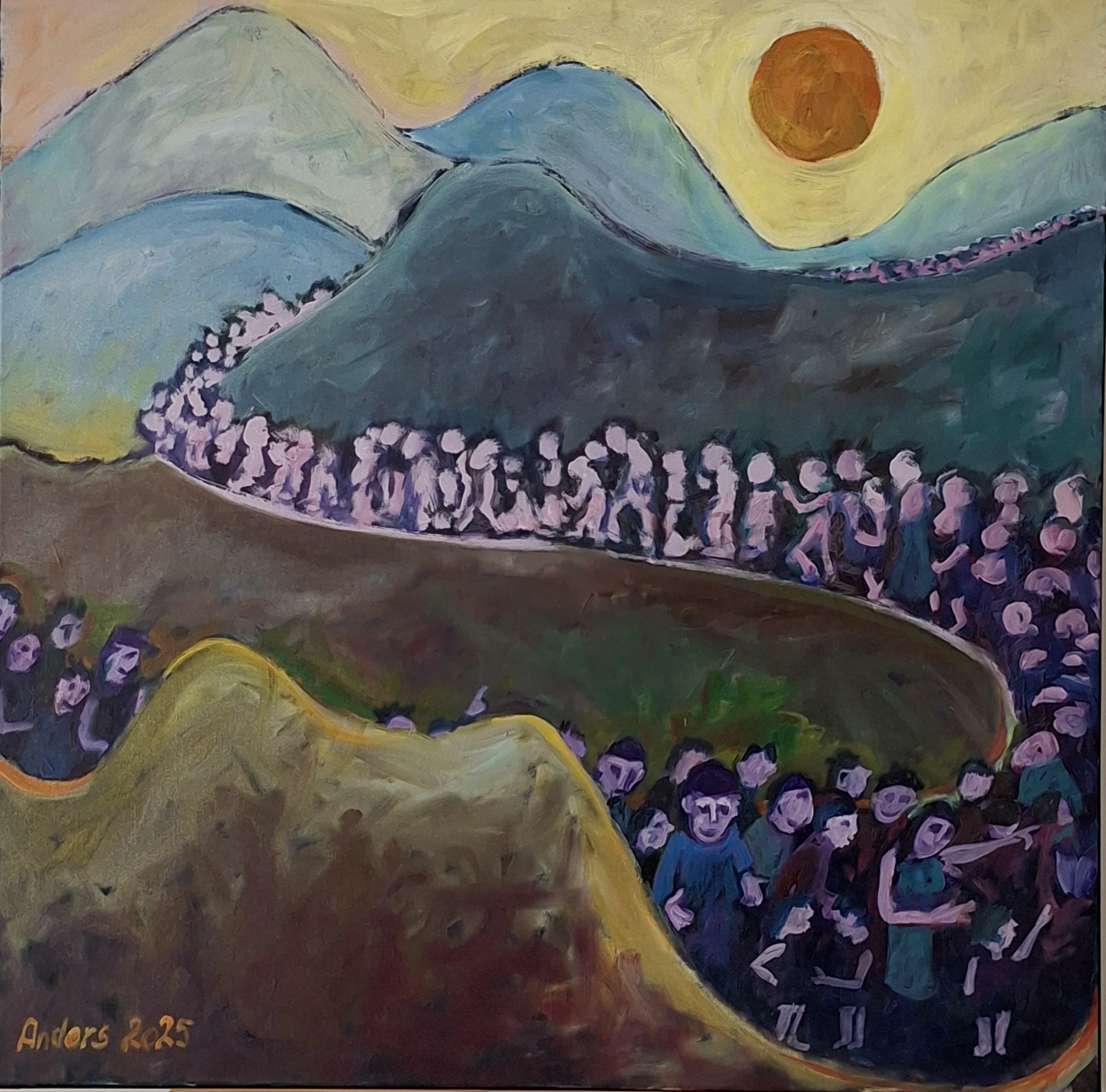 Jeg vil egentlig gerne være mere "politiserende" og samfundsrelevant i mine billeder. I 2013 malede jeg 2 billeder, som har et indhold, der er inspireret af tidens krig og kriser. Jeg har kaldt malerierne henholdsvis "Mennesker på kanten" og "Ud over kanten". Disse ses her sammen med de øvrige billeder fra den periode: