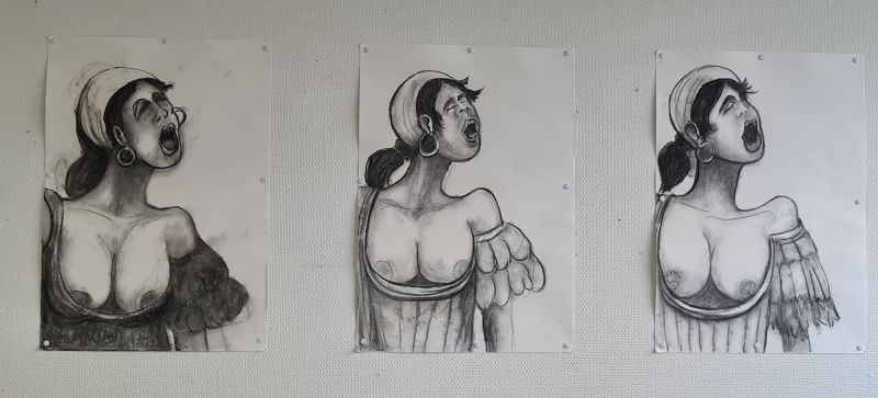 Jeg har altid været fascineret af kvindekroppen og forholdet mellem kønnene. Det førte i 2010-12 til at jeg malede nogle dejlige fyldige kvinder sammen med en betydelig mere beskeden og mindre og undseelig mand. En slags selvportræt. Jeg malede også, da jeg gik hos Andreas Østergaard i Hasle, nogle mere direkte, realistiske portrætter og selvportrætter :