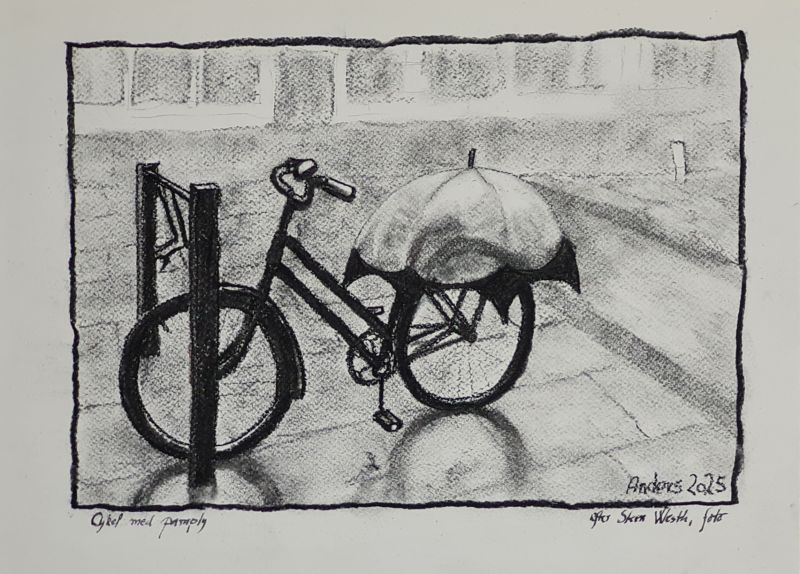 Et af mine temaer i 2021 var: JEG HOLDER AF HVERDAGEN. Ligesom Dan Turéll: Mest af alt holder jeg af hverdagen ..... Jeg sad på et tidspunkt på en café i nærheden af Hovedbanegården. Det regnede. Jeg ventede på Bornholmerbussen. Folk gik forbi ude på fortovet, - travle, med paraplyer og/eller regntøj. Nogle med kufferter på slæb, de skulle nå toget til Jylland. Jeg tog en masse snapshots af dem med mobilen. 70 fotos. Nogle af dem har jeg så brugt som forlæg for en serie billeder under temaet: ”Jeg holder af hverdagen”. Det er rigtig hyggelige billeder, - lige til at hænge op over sofaen: