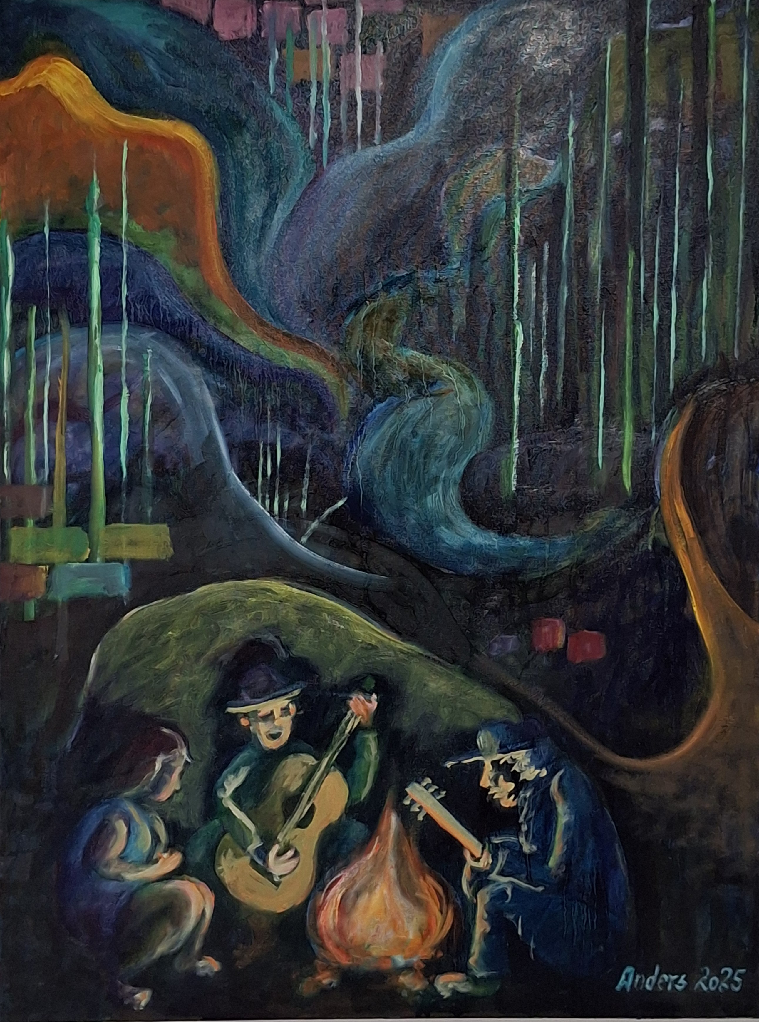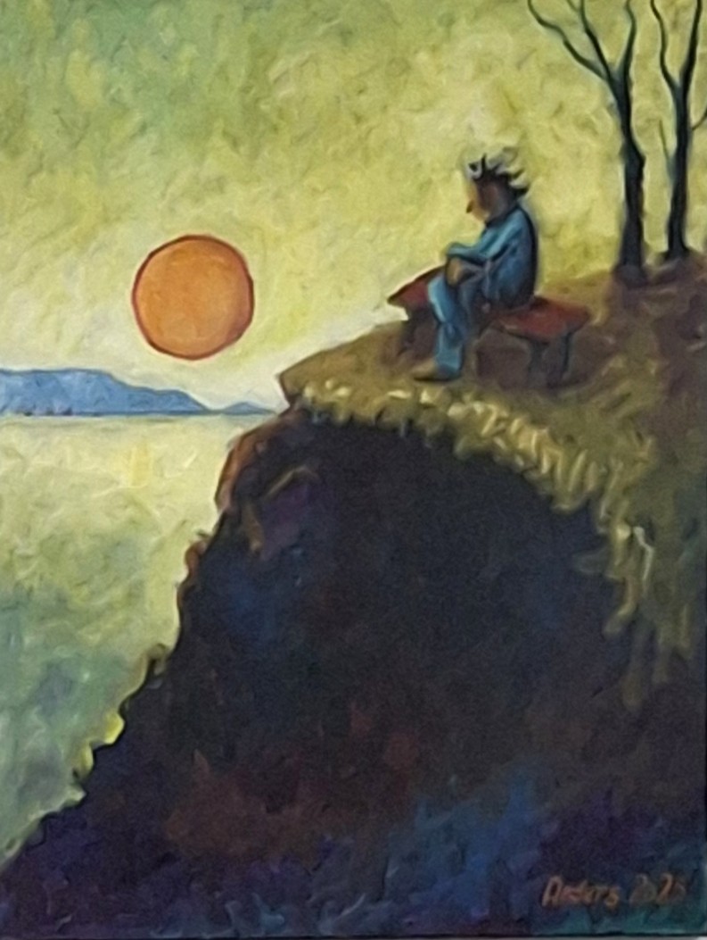 Efter Trumps udmeldinger i februar 2025 om, at USA vil overtage Grønland, kunne jeg ikke sove om natten. I stedet stod jeg op og påbegyndte mit hidtil største maleri: ”Trump i Nuuk” (akryl og olie 100 x 140 cm).