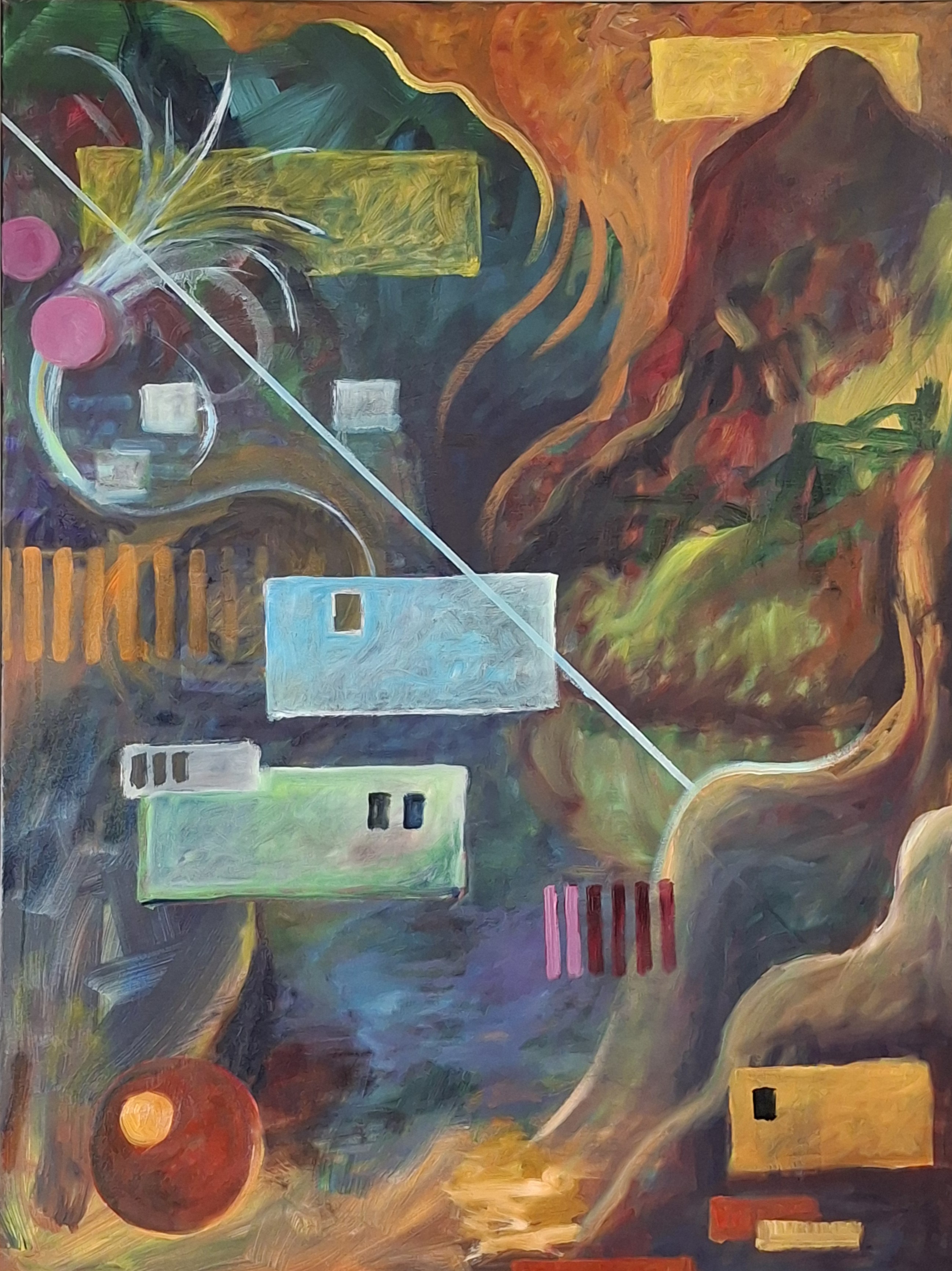 I 2022-23 lod jeg mig inspirere af den russisk-amerikanske maler Rothko. Dennes leg med farver har fundet vej til mine værker og det har fascineret mig, hvor meget man kan arbejde med farve-fladen og hele tiden få nye udtryk og sanseindtryk i den. Indimellem har jeg dog krydret de Rotko-inspirerede flader med mine egne mere eller mindre seriøse figurer.