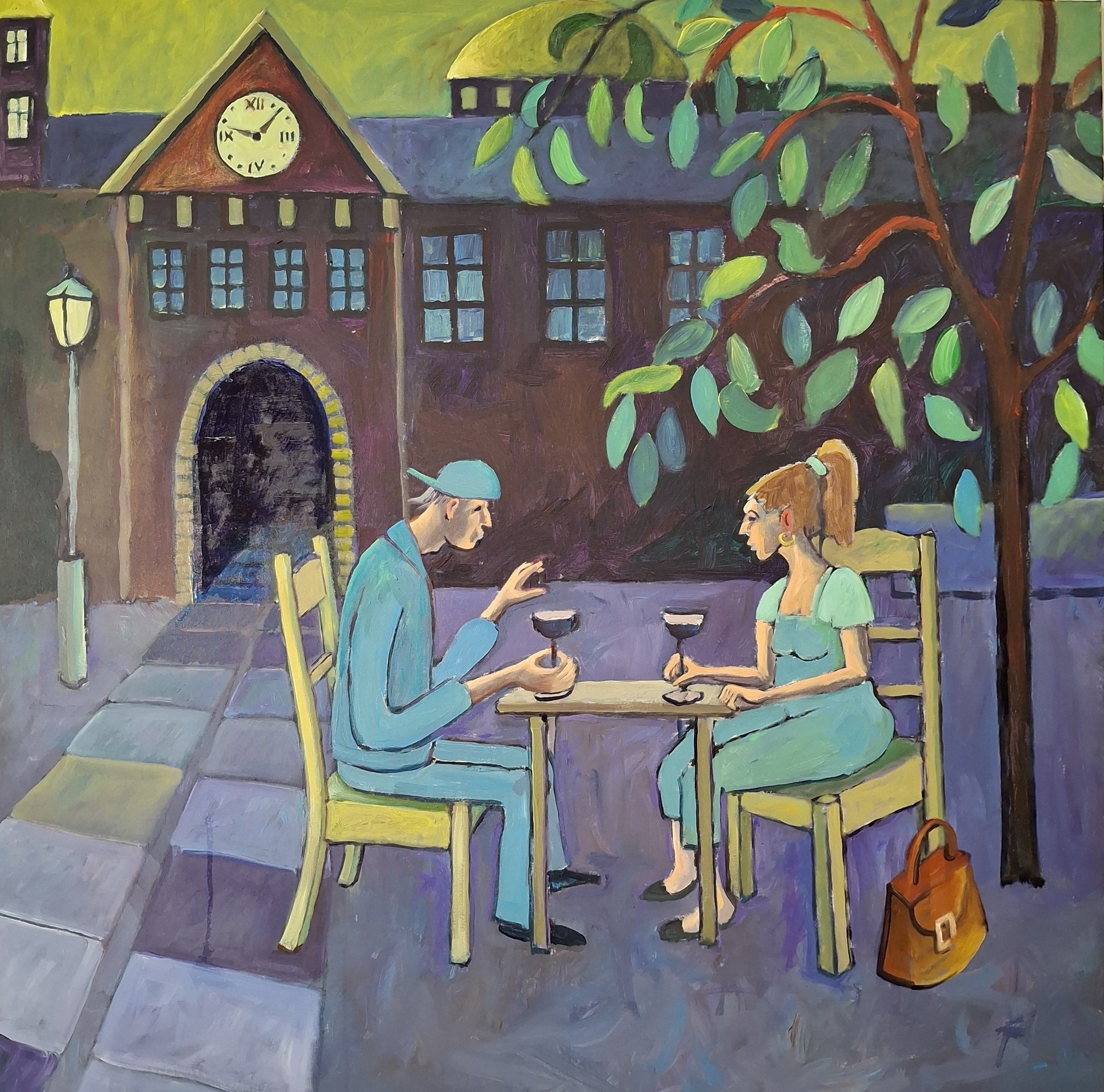 Et af mine yndlingsmotiver har gennem tiderne været tabloer, gerne bybilleder, hvor der foregår en hel masse. "Skyhøj dame i byen" er et eksempel på sådan et billede. På det seneste (2016) har jeg malet flere billeder med lignende motiver: Huse eller landskaber med en masse forskllige mennesker i..