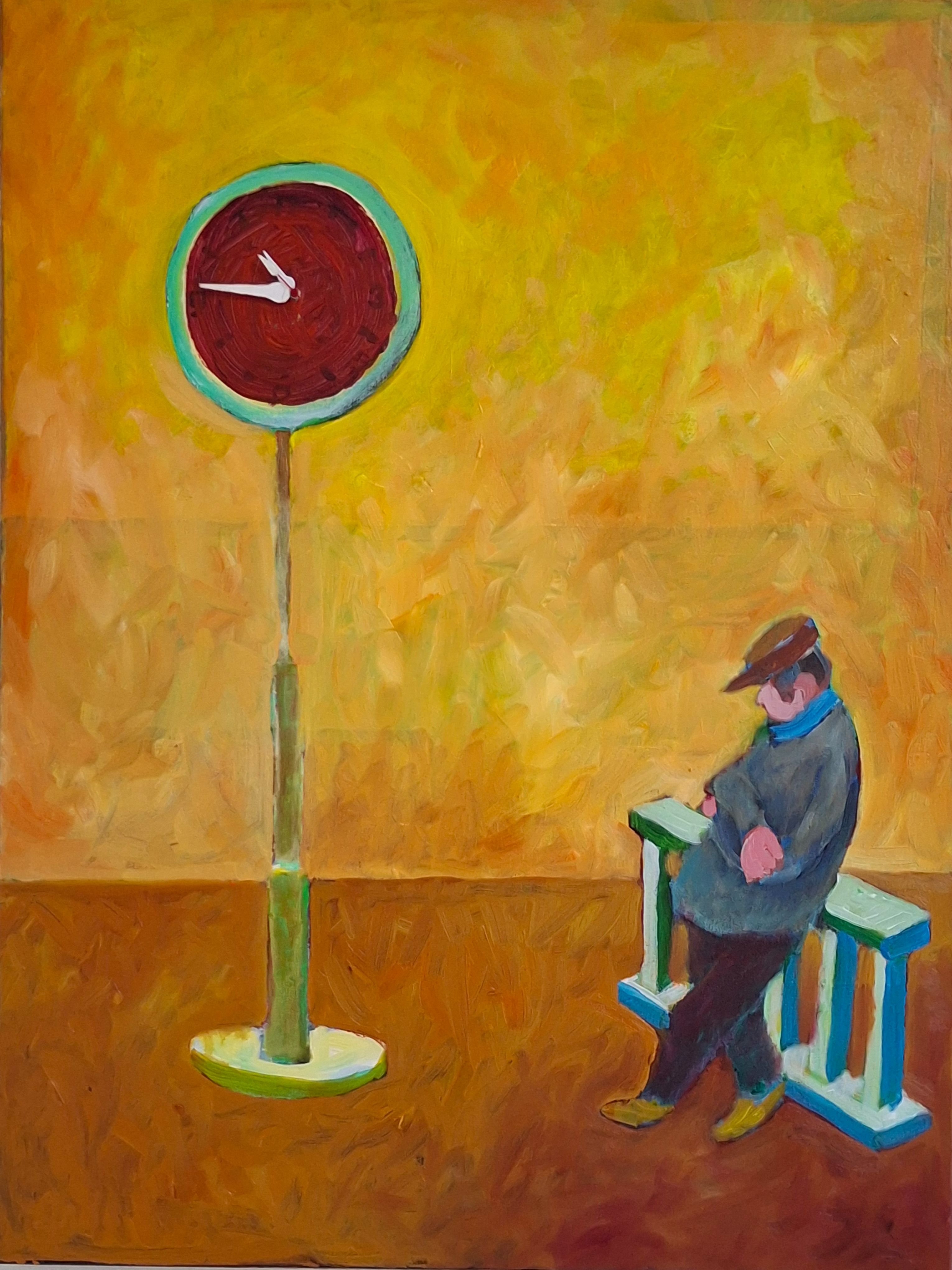 TIDEN GÅR. Det er et fænomen, jeg har lagt mærke til i lang, lang tid, ja siden jeg blev født. Jeg er stadig meget fascineret af at tiden går . Og det er baggrunden for, at jeg igennem årene ofte har bygget ure ind i mine malerier. Jeg udstillede i februar 2023 sammen med Isefjordskunstnerne i Østre Kapel i Holbæk. 17 af maleriene er med indbyggede ure. De kan, når de hænger på væggen i dagligstuen eller køkkenet, minde køberen om, at tiden ikke er gået i stå, og at man lever endnu: